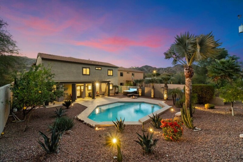 Nestled on a quiet cul-de-sac with ample space between neighbors, this home offers stunning North Mountain views & a tranquil, private setting. The resort-style backyard is designed for relaxation & entertainment, featuring a sparkling pool with a Baja step, a spa, a gas firepit, & an oversized covered patio. A large paved driveway, security door, & secluded front patio enhance both privacy & curb appeal. Inside, the gourmet kitchen boasts Dacor stainless steel appliances, a 6-burner gas range, double ovens, granite countertops, & an R/O system. The open-concept living area is wired for surround sound, extending to both patios. The primary suite features a private balcony, dual vanity, dual-head shower, & walk-in closet. Additional highlights include a new irrigation system, newer gas water heater, new garbage disposal, Trane A/C units, a gas LG washer/dryer, a water softener, smart home technology & recently painted interior walls. Located near North Mountain hiking trails, world renowned golf courses, fine dining & shopping, with a short drive to Downtown Phoenix, Old Town Scottsdale, Sky Harbor Airport & more, this home combines privacy, luxury, & convenience in a prime Phoenix location.
