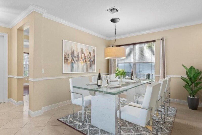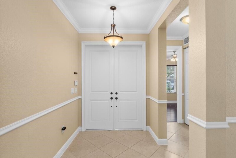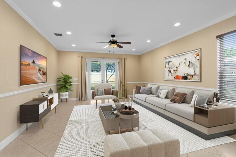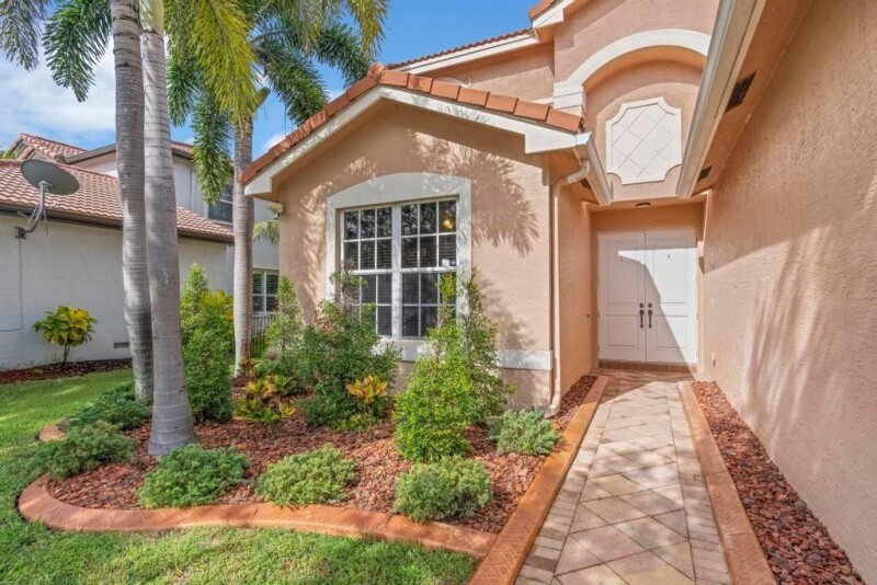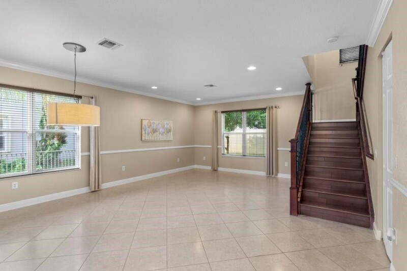 Welcome to this stunning 5 bedroom 3 bath home situated in a gated community with resort style amenities. This spacious home features engineered wooden floors, custom closets, crown molding, wood cabinets and stainless steel appliances. The home has a large screened in patio, play room in garage, impact windows all around and no back side neighbors. Located near major highway, shops and excellent school zones, look no further make this your dream home today!.