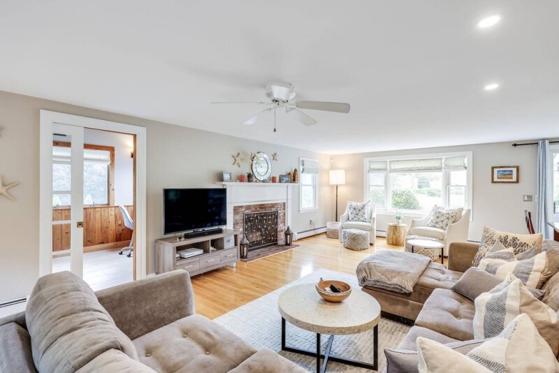 Nestled in the heart of West Falmouth, this beautifully maintained three-bedroom, three-bath home offers stunning views of Buzzards Bay and unforgettable sunsets. The thoughtfully designed layout includes a first-floor bedroom, while both upstairs bedrooms feature updated ensuite baths for comfort and privacy. Recent updates include a new roof, generator, and stylishly renovated bathrooms, along with a finished bonus room on the lower level—ideal for extra living space or a home office. The inviting all season sunroom, just off the family room, is perfect for relaxing year-round. Step outside to enjoy the private deck, complete with a remote-controlled awning, or rinse off in the outdoor shower after a day at nearby Chapoquoit Beach. With easy access to the Shining Sea Bikeway and West Falmouth Village, this home is a rare find in an exceptional location. Impeccably cared for and move-in ready, it's a must-see!.