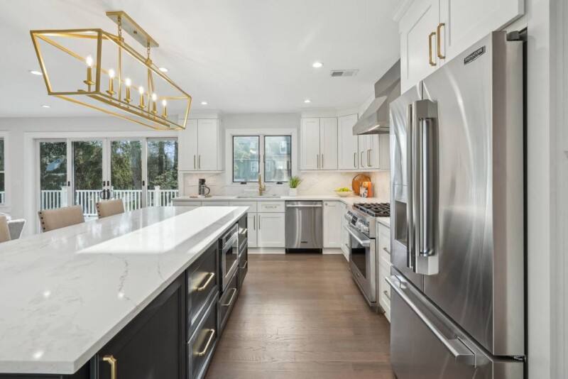 This is the one. Another stunning transformation by local, renowned Maplewood builder, Atlantic Concepts. This five bedroom, five and one half bath colonial was thoughtfully designed to blend harmoniously with the neighborhood's charming exterior aesthetic. Inside, you'll be wowed by the spacious rooms and meticulous attention to detail featuring beautiful hardwood floors, Kohler bath fixtures, and multi zone heating/cooling. Upon entering the foyer, an open concept floor plan seamlessly allows for easy entertaining. A living area with gas fireplace is the perfect spot to relax, and the adjacent dining and casual living areas make for comfortable everyday living. An office/sunroom with an abundance of natural light provides privacy for those working from home. The chef's kitchen, complete with Signature Suite appliances, quartz countertops/backsplash, white shaker cabinetry and large contrasting center island makes cooking a pleasure. Off the kitchen is a pantry, powder room, mudroom and entrance to the two car garage. Sliding doors off the kitchen lead to a 32 foot long Azek deck with gas hook-up, and newly sodded yard with room for a playset. The second floor includes four bedrooms, a primary ensuite with huge, outfitted walk-in closet, another ensuite bedroom, two additional bedrooms, hall bath with tub, and convenient laundry room. The finished third floor offers a bedroom, full bath and ample storage. The fully finished lower level provides additional living space and a full bath. Jitney is just steps away...your dream home awaits..