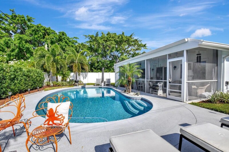 Nestled on a spacious corner lot in a desirable East Delray neighborhood, this beautifully remodeled 3 bedroom, 3 bath pool home offers the perfect blend of modern upgrades, timeless charm, and unbeatable location-just minutes from Atlantic Avenue! Upon entering the home, the Living Room is located to the right of the foyer, where oversized windows fill the space with natural light, creating a bright and welcoming atmosphere. Continuing on, the home's stunning 2024 kitchen renovation is a chef's dream, boasting a Fulgor Milano induction cooktop and grill with matching hood, and top-of-the-line Thor appliances, including a wine cooler, drawer microwave, refrigerator, and dishwasher. The custom chef's sink is equipped with cutting boards, drying racks, colanders and bar accessories.