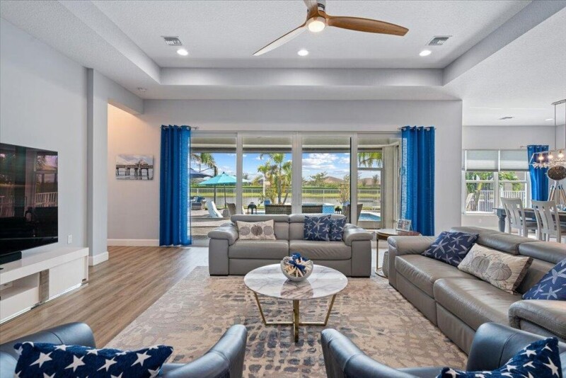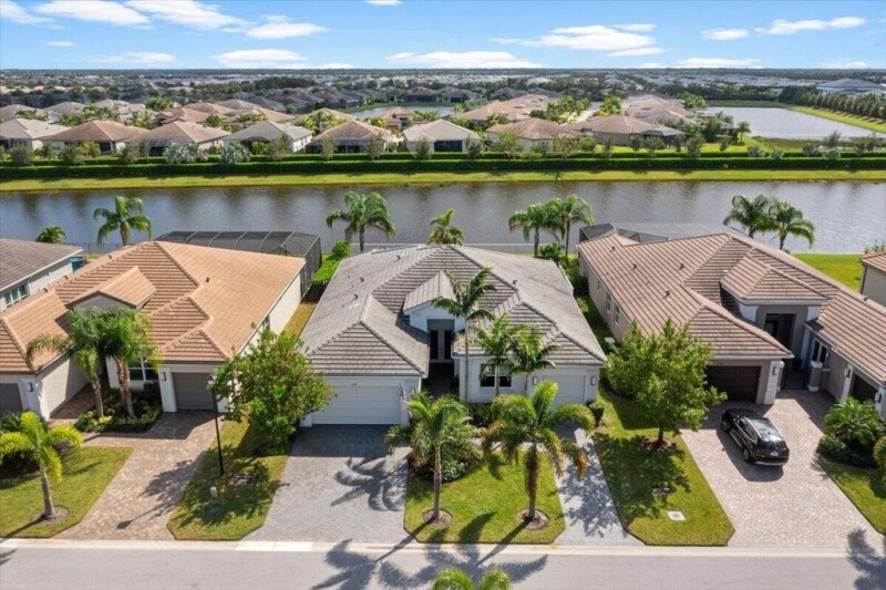 This Bellagio model pool home, nestled on one of Valencia Cay's most private lakefront lots, stands as a beacon of luxury. Upon entering, the captivating lake view draws you to the serene backyard haven, complete with a saltwater heated pool and spa amidst lush landscaping. Yet, the interior's multitude of enhancements are equally compelling. The gourmet kitchen with premium cabinets, quartz countertops and backsplash with stainless appliances serves as the heartbeat and central core of this spacious light, airy and open contemporary dwelling. A comforting Main Suite provides views to the backyard and has 2 large walk-in closets with custom cabinetry and a spa-like bathroom with large walk-in shower, plus his and her vanity areas. The 2nd Bedroom with ensuite awaits your guests. A se.