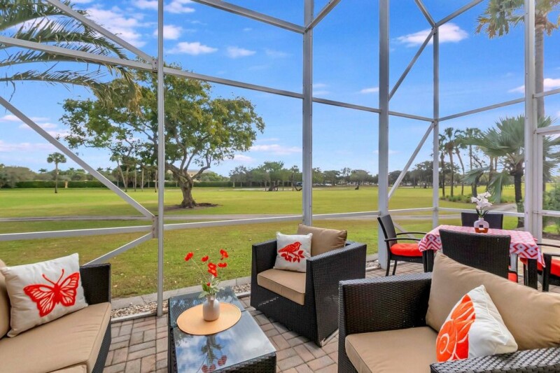 REDUCED 100K FOR QUICK SALE! STUNNING PRISTINE & BRIGHT 1-STORY COURTYARD Townhouse, 2 BEDS/3 BATHS w/GOLF VIEW in desirable GATED Community of BOCA RATON CC, NO MANDATORY MEMBERSHIP* GUEST HOUSE is the 2nd BED* FULLY NICELY FURNISHED & TURNKEY, including 2 TVs (83” & 65”), Wine cellar, Patio sets & ALL* SPLENDID MARBLE floors throughout* OPEN concept w/graceful arch & VOLUME ceilings create SPACIOUSNESS* 2 car-garage attached w/TILED floor, Laundry room & TANKLESS WH* 3 walk-in closets* EVERPURE WATER FILTER SYSTEM for the whole house* HVAC ductwork redone, relocated in ATTIC in garage for QUIETER inside, A/C 2022* HOA $500/mo: Security, Cable, INTERNET, Landscaping & Exterior Paint* Country Club living w/18 hole GOLF course (PAY AS YOU PLAY), onsite restaurant & splendid lush landscaping.