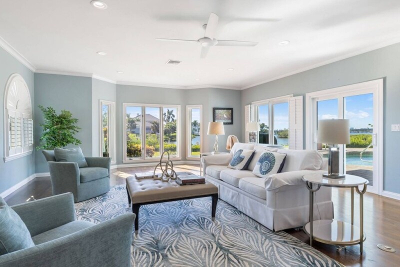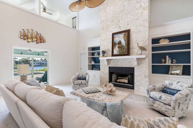 Boater's paradise, between 2 inlets, nearby fuel and marine services. Coveted Riomar Bay location is "between the bridges" and a short golf cart ride from shops, restaurants, farmer's market, and the beach. 4,200 Square feet with 3 bedrooms, 3.5 baths and 3-car garage. Redesigned kitchen with top-of-the-line Thermador appliances including induction cooktop and new double wall ovens. New ACs and new water heater. Upstairs loft with bar offers a balcony with sweeping water views. Outside living features a resurfaced pool surrounded by new decking and one of the most enviable Trex docks in town with 10,000-pound boat lift, plus jet ski lifts.