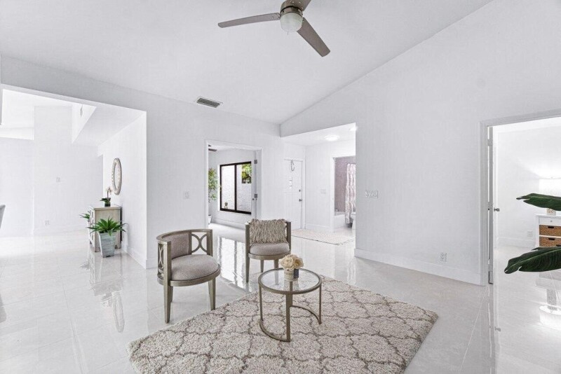 Fully Remodeled Home in East Delray Beach!Don't miss this stunning 3/3/2 home in gated Rainberry Lake! NEW ROOF 2024, and the home features hurricane IMPACT WINDOWS. Soaring ceilings and 30x30 porcelain flooring create a bright, airy feel. The elegant bathrooms are fully remodeled with neutral porcelain tiles. The kitchen boasts quartz countertops, white shaker cabinets, and stainless steel appliances. Enjoy the extended screened lanai overlooking lush tropical landscaping. The fenced backyard is perfect for kids or pets! Rainberry Lake offers direct access to Lake Ida, a community pool, and the option to build a dock for a 20-ft boat. Photos reused from previous listing, currently no furniture in property. $15,000 more in improvements made since then.