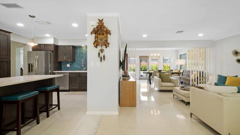 3 BEDROOM/3 BATH/2 CAR GARAGE/POOL IN HARBOR VILLAGE. (BRAND-NEW POOL CONSTRUCTION [$70k] IS INCLUDED in the price !) HARBOR VILLAGE is one of the MOST EXCLUSIVE, NON-HOA areas in Pompano Beach! NO PET OR RENTAL RESTRICTIONS. Huge Corner Lot, Cul-de-sac, Polished Terrazzo Floors, Gorgeous Paint, High-hats and Plantation Shutters throughout. This looks like ''home'' the minute you drive into the circular driveway, treed lot, beautiful color, and front porch that begs you to relax, enjoy the view, and say hi to the neighbors walking by before going in for dinner. Just inside is the 31' GREAT ROOM - large, comfortable sectional seating for at least 10 of your family and friends... and the OPEN CONCEPT that takes your view straight through the Dining Room w/4 panel French doors to.