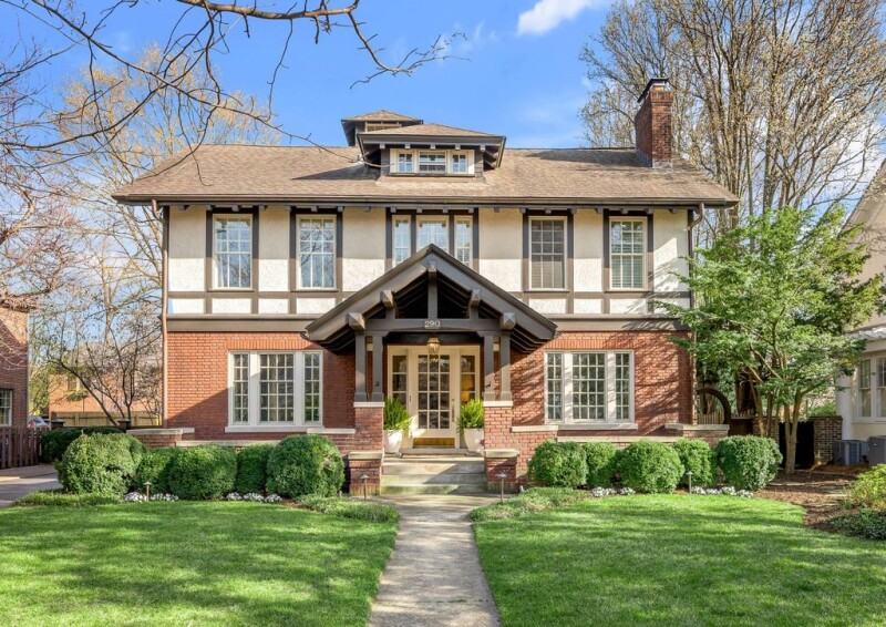 This stunning Ashland Park home exudes elegance, style, and timeless charm. As you step onto the inviting front porch, take note of the graceful Japanese-inspired gable. Inside, a spacious entry foyer welcomes you, leading to beautifully appointed living and dining rooms. The living room is bathed in natural light, featuring an exquisite Italian marble mantel—one of a historic pair from Lyndhurst Place—along with original light fixtures that enhance the home's character. The first floor also boasts a large dining room with hand-painted wall designs, a butler's pantry, a half bath, and a stylish kitchen that opens to the family room—perfect for seamless indoor-outdoor living with views of the serene patio and beautifully landscaped backyard. The lush, mature landscaping and towering trees create a private and picturesque retreat. Upstairs, the second level offers a spacious primary suite with a cozy fireplace, two additional bedrooms and two full baths. The third floor, features a home office, bedroom and a full bath. Additional highlights include an unfinished basement, an oversized two car garage, an electric driveway gate, and one of the most enchanting backyard.