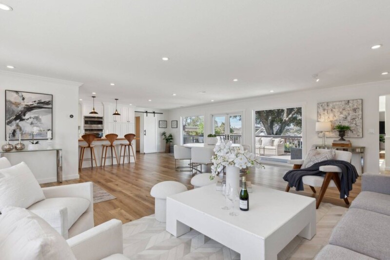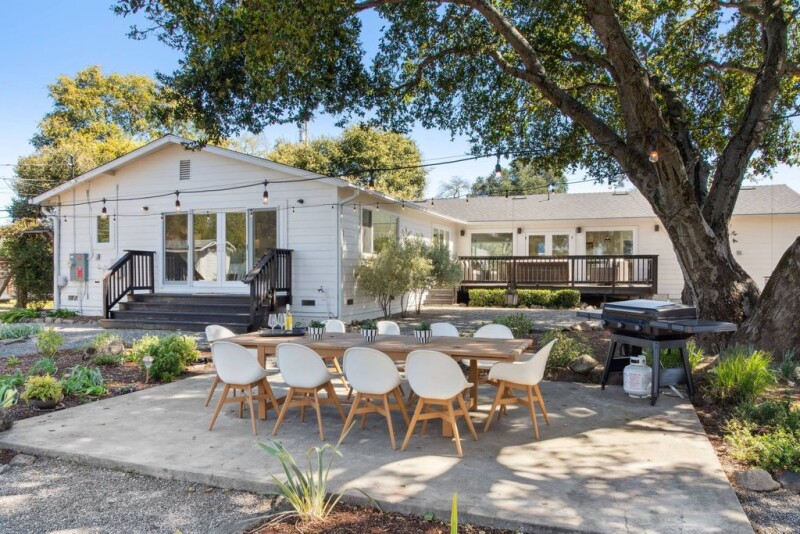 Located at the end of a country lane on the desirable East Side of Napa minutes to downtown and within a short distance to Skyline Park lies a remodeled modern farmhouse style single-level home on .63 acres with room for pool, pickle ball, bocce, and more. 2524 square foot, four bedroom, two and half bathroom, featuring spacious and luxurious main ensuite with sliding glass doors that open to the private deck with views of the stunning grounds, large walk-in closet with built-ins, and spa-like bath offering furniture grade double sink vanity, free-standing tub, and walk-in stall shower with dual shower heads. One of the four bedrooms currently used as a media room and office. Expansive great room with seating and dining areas open to the modern kitchen featuring center island with counter seating, Shaw farmhouse sink, and stainless appliances including Bertazzoni gas cooktop with Viking hood, GE Oven and microwave, Viking dishwasher, and LG refrigerator. French doors open to a spectacular backyard with a deck, large outdoor entertaining terrace, a majestic oak tree, bistro lighting, garden beds, and a fruit orchard for farm-to-table wine country living! Additional features include a newer roof, owned solar, tankless water heater, 2 EV chargers with ample parking, Nest thermostat, Rachio irrigation controller, August smart lock, natural gas, public sewer, and storage building!.
