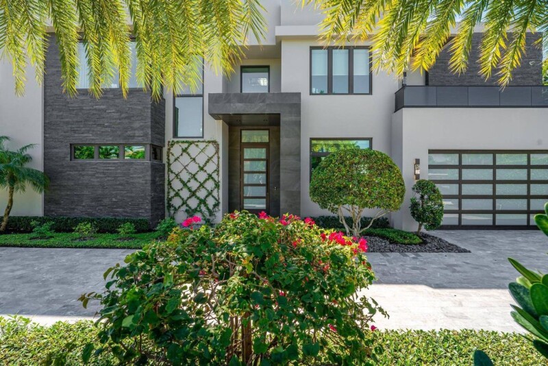 Tucked away on the smallest, most private cul-de-sac in Golden Triangle, a dramatic three story contemporary ultra custom residence is right beside Boca Raton's downtown intracoastal waterway. The sleek, modern facade captivates with bold geometric lines, floor-to-ceiling glass windows, a striking mix of smooth stucco and textured stone accents. The grand entrance, framed by custom glass doors and dark stone cladding, sets the stage for the exquisite interiors .Walking distance to the ocean and downtown Boca. East of NE 5th Ave the main house features a two story great room, open kitchen featuring Sub-Zero and Wolf, MAIN floor primary suite and full en-suite bedroom. The second level features three ensuite bedrooms (one currently used as a loft) a full theater, exercise room and office.