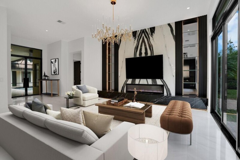 Experience unparalleled elegance in this fully renovated 3,600 sq ft courtyard home, nestled within the distinguished Mizner Country Club in Delray Beach. Exquisitely designed, this 4-bedroom, 3.5-bathroom home, along with a private office, offers an open and airy floor plan, high ceilings, and premium finishes throughout. The gourmet kitchen is a culinary masterpiece, featuring top-of-the-line Wolf and Sub-Zero appliances, including a 60'' side-by-side refrigerator/freezer, three ovens, warming drawer, and a Miele built-in coffee station. A large quartzite island with dual sinks, two dishwashers, and custom cabinetry provides ample space for both cooking and entertaining.