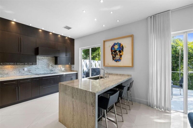 Experience a breathtaking modern residence in North Coconut Grove. Step through custom woven-stainless steel gates into a private retreat, featuring a beautifully designed interior and exterior. High-end finishes include Brazilian hardwood and porcelain tile flooring throughout. Impact windows and sliding doors open to a spacious terrace that overlooks a tropical pool, hot tub, outdoor bar, and shower. This 4 bedroom, 3 1/2 bathroom home is just minutes from downtown, Miami International Airport, and the heart of Coconut Grove, with an array of restaurants, shops, and parks nearby.