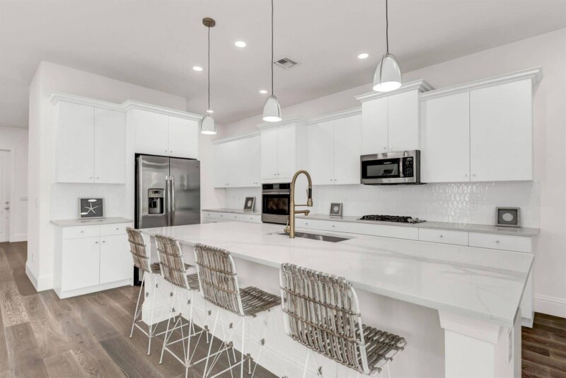 This beautifully renovated, modern 4-bedroom, 3-bathroom home with a 3-car garage is located in the prestigious Alton community of Palm Beach Gardens. This solid CBS construction boasts a bright and airy open floor plan, brand new luxury vinyl flooring throughout the entire home, and hurricane impact doors and windows throughout. The spacious kitchen is a chef's dream, featuring a brand-new quartz island, an undermount stainless steel sink, elegant white cabinetry, and stainless-steel appliances. The thoughtfully designed layout includes one bedroom and a den on the first floor, great for guests, a home office, and more. Upstairs, you'll find three additional bedrooms, including the luxurious primary suite with a large walk-in closet and a completely updated en-suite bathroom, SEE MORE.