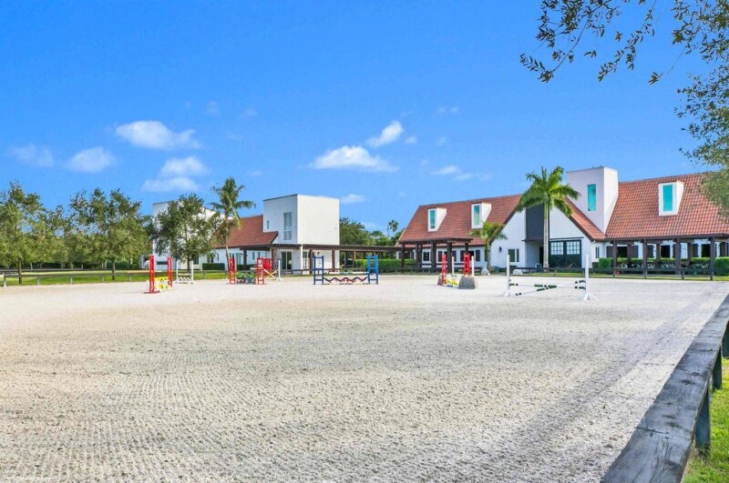 This first-class gated equestrian estate located in Saddle Trail of Wellington, within hacking distance to the show! Enjoy just about a one mile hack to Wellington International all on maintained bridle paths. This all-inclusive property boasts a beautiful and thoughtfully designed 16-stall barn, full equestrian amenities, and a luxurious, designer home, all nestled on over 4 acres in the heart of Wellington's horse country. The stately barn features wide rubber-matted center aisle-ways with 12x12' matted stalls, 2 tack and 2 feed rooms, fly spray system and outdoor grooming areas. There is also a rider's lounge, office and 2 full bathrooms. There are 2 all-weather riding arenas, a round pen and 8 grass paddocks. Property has city water. Seller financing possibly available.