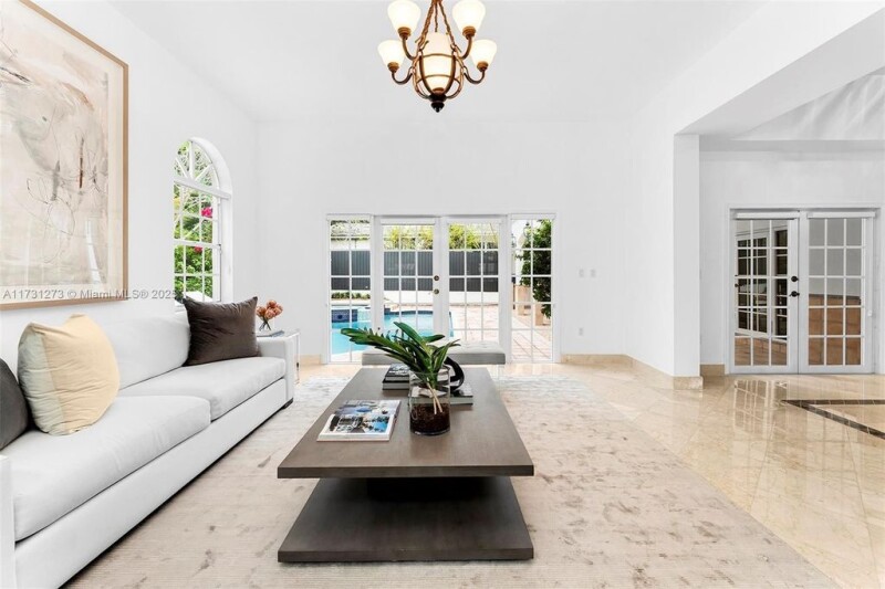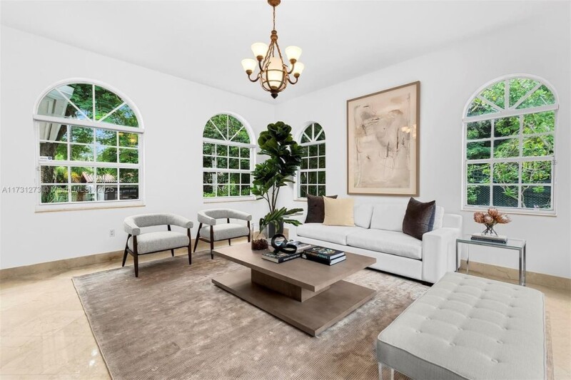 Welcome to a stunning 2-story residence that perfectly blends sophistication, comfort, and modern living in the heart of Coral Gables. The foyer opens to elegant formal living, dining, and family rooms, seamlessly connecting to a gourmet kitchen equipped with top-of-the-line appliances and a charming breakfast nook. Upstairs, enjoy the comfort of two luxurious master suites, each with its own bath, along with two additional bedrooms and a shared bath. Modern enhancements such as an integrated sound system, impact windows, and advanced security systems add to the home's allure. Outside, a private oasis awaits with a sparkling pool, jacuzzi, and lush landscaping. Complete with a 2-car garage, circular driveway, and recent upgrades, including a new roof and central AC in 2022.