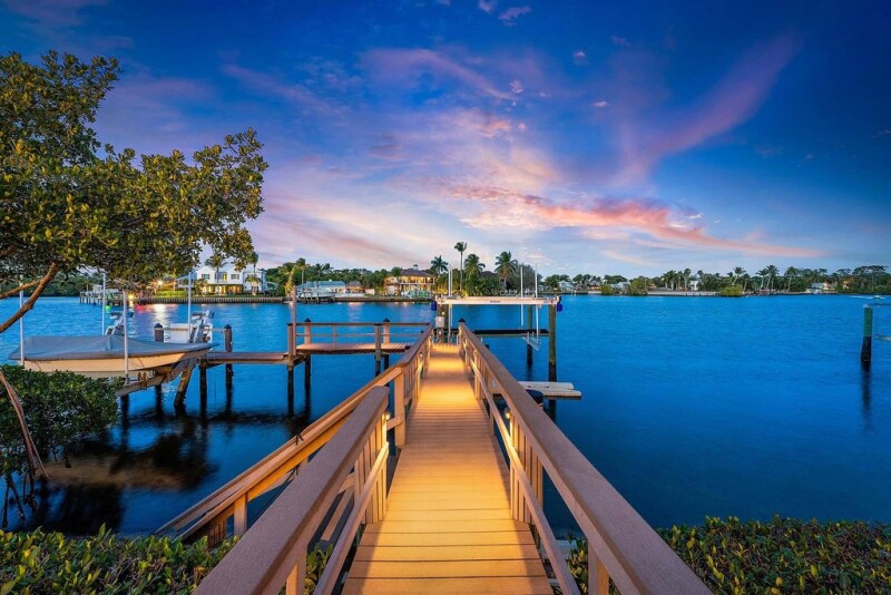Enjoy breathtaking Easterly views of the wide water, overlooking the Loxahatchee River, from this exceptional home located on a private island in the prestigious Islands of Jupiter. Thoughtfully designed for comfort and functionality, this residence features a ground-floor primary suite, an elevator, and a large upstairs loft that can be used as a gym or an entertaining area. Recent upgrades include a brand-new 2024 roof, fresh landscaping with new trees, and newly installed synthetic turf for easy maintenance. Boating enthusiasts will love the private dock with a lift, offering quick access to the Jupiter Inlet and nearby sandbars. The spacious three-car garage provides ample storage, while the lush outdoor setting enhances the natural beauty of this property.