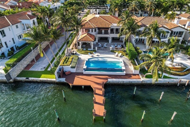 Spectacular Mediterranean home with incredible unobstructed views of Biscayne Bay. This 2-story waterfront residence sits on 2 lots on a quiet street with a gated entrance in Coconut Grove. Features of this 6BR/5+2BA home include a chef's kitchen, two refrigerators & gas range, Viking & Subzero appliances, 2 large wine storage cabinets, custom millwork throughout the home, movie theater, detached 2-bed guest house, & 3-car garage. Outdoor highlights include brand new private dock, infinity pool, covered summer kitchen, and 70 ft of water frontage. Fully gated & walled, with neighborhood security patrol and only one immediate adjacent house, this property feels like a private compound. This is a must see, and will not last. Actual Sq ft: 7,521. By appointment only.
