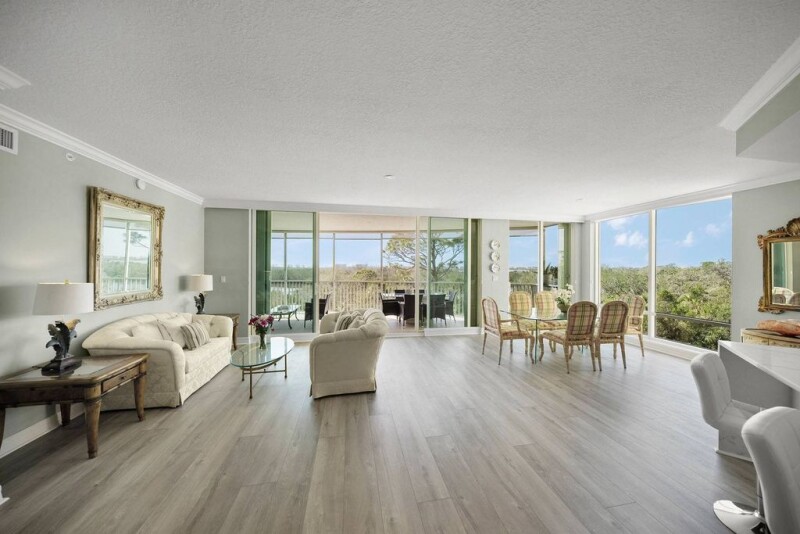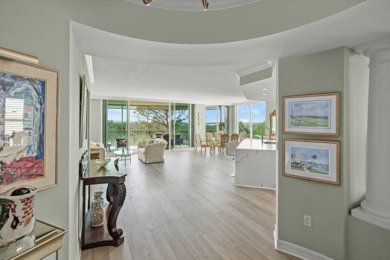Stunning updated condominium with breathtaking water views. Welcome to this beautifully updated, spacious condominium offering 3,106 square feet of total living space, one of the largest non-penthouse units in the Oaks Preserve Country Club neighborhood. This four-bedroom, three-bath residence behind secure gates promises a lifestyle of comfort, style and tranquility, with sweeping wide water views from an expansive, screened balcony. Upon entry, a private elevator lobby leads you to an elegant, modern interior that has been thoughtfully renovated. Featuring luxury vinyl plank flooring throughout, striking quartz countertops and stainless steel appliances, the kitchen is a chef's dream. A waterfall island with seating, a stylish barista-wine bar area and designer lighting create the ideal ambiance for culinary exploration and entertaining. Enjoy the balance of beauty and function with ceiling fan lighting, plantation shutters, crown molding and a turnkey furnished option for those looking for a hassle-free move-in. The generously sized owner's suite is a private retreat overlooking serene water views with walk-in closets, double vanities, soaking tub and a walk-in shower, providing access to the expansive balcony, ideal for morning coffee or relaxing at sunset. The guest en suite provides a comfortable and private space, while the third and fourth bedroom, maybe used as a den or office, providing flexibility for your lifestyle. Additional features of this condominium include a large utility room with side-by-side washer and dryer, freezer, sink and ample cabinet space, plus an included climate-controlled storage unit. Two covered side-by-side parking spaces are conveniently near the lobby. The standout feature of this residence is its grand screened balcony with hurricane shutters and sunshade blinds, ideal for enjoying mesmerizing water views, stunning sunsets and natural wildlife surrounding the area. Residents of The Oaks Preserve enjoy access to a fully equipped fitness center, a tropical landscaped heated pool and spa, and a 24-hour staffed guard gate for added security. With two HVAC systems, keyless entry, and proximity to the neighborhood's walking and biking trails, this condominium combines ease of living with luxury amenities. Membership begins with ownership. The Oaks Club, where coastal sophistication is experienced over 36 championship fairways, 16 Har-Tru tennis courts and four pickleball courts, and championship croquet. There are countless opportunities for recreation, sustenance, relaxation and connection in one of three distinctive gated residential communities, each presenting a bespoke slice of coastal luxury supported by 24/7 security. These lush environs welcome the Little Sarasota Bay breeze as you unlock the haven within. Sarasota's unmatched country club lifestyle can be yours.