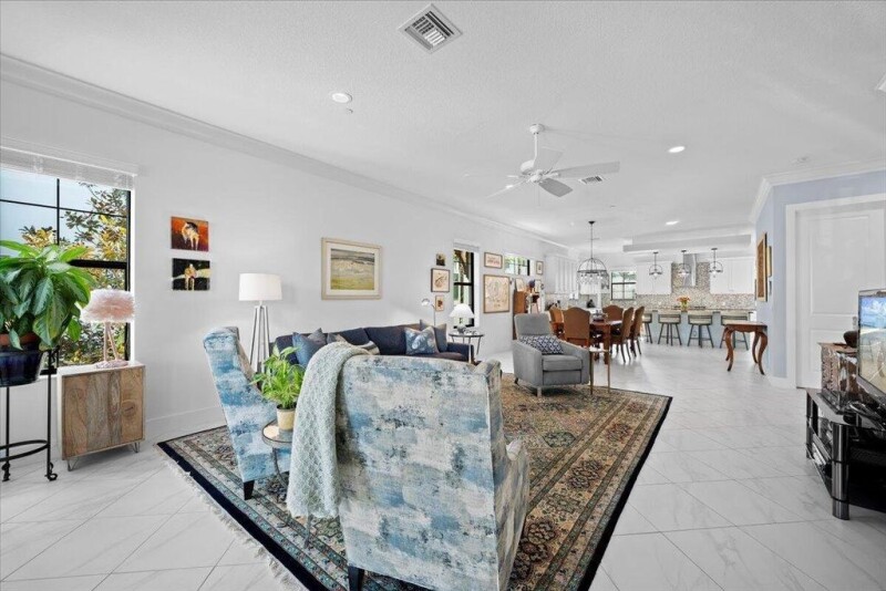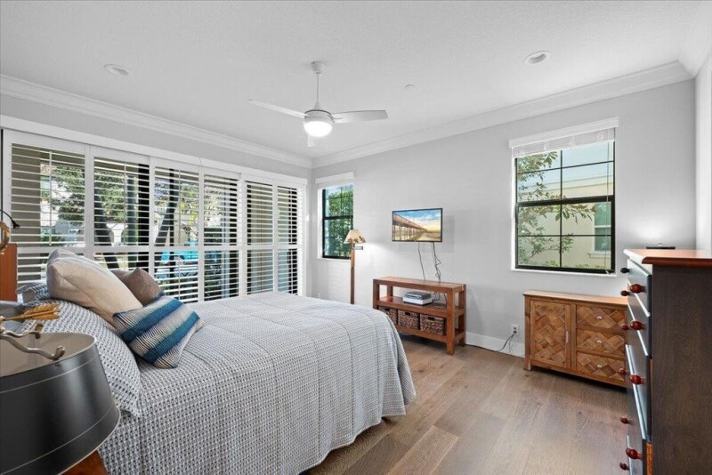 Experience Palm Beach Gardens living at its best in this highly upgraded Bristol Model 4 bedroom Townhome located in the Alton phase 1 neighborhood, situated on a quiet street. This end unit has 10 extra windows and allows sunshine in to make it feel like you are in a free standing home. Upgrades to the house include plantation shutters and blinds, crown molding, new fixtures in powder room and entrance hall, tiles on kitchen island, kitchen pendant lights, wine cabinet, LED fixtures, fans in all rooms, security system with 3 exterior cameras, dining lights under cabinets in kitchen, built in cabinets in primary and pantry, IWAVE air filtration in HVAC and HALO water filtration system, wood floors in downstairs bedroom and all stairs. The partial water view from the kitchen, along with th.
