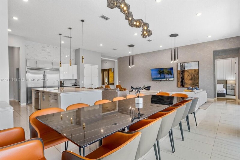 Vacation Rental with Big ROI. This luxurious vacation home boasts of exceptional features and a bright, airy atmosphere with its open laqyout, high ceilings, large windows, gourmet kitchen and an Informal Dining area are ideal for short term rentals. Recreational amenities include a private pool, spa within a screened enclosure, a covered patio, movie theatre, a gym, Pac-Man game room and a recreation loft with games. The versatile space ensures ample entertainment options for guests. Villatel Village has a playground and a 15K SF event center with kitchen. Guests have access to the full amenities of Solterra - pools, laxy river, tennis and more. Near Disney Parks, Golf, shopping and restaurants.