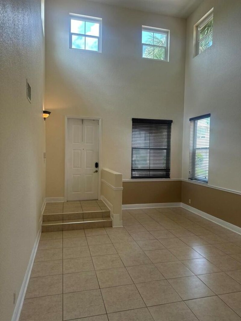 Nestled in the gated community of Abbington, this stunning 5-bedroom, 3.5-bath lakefront home offers the perfect blend of elegance and comfort. Featuring all new appliances, customized faux wood blinds, crown molding, and a brand-new air condenser unit, this home is move-in ready. Hurricane-impact windows and sliding glass doors provide top-tier safety, while the open-concept kitchen seamlessly flows into the great room, ideal for entertaining. A formal living area adds additional space for gatherings, and the first-floor master suite offers tranquil lake views. The beautifully crafted bamboo wood staircase leads to four spacious bedrooms and an office loft, perfect for work or study.
