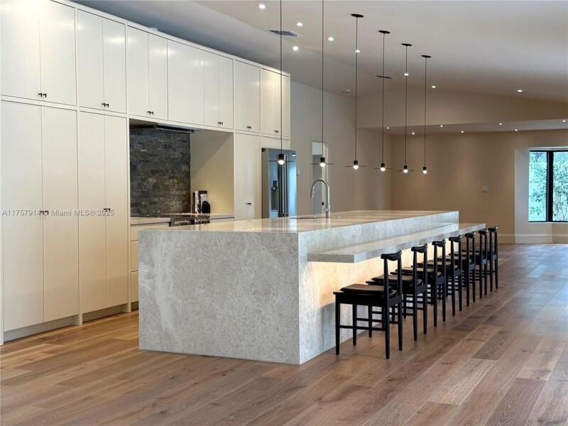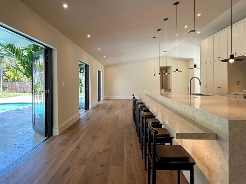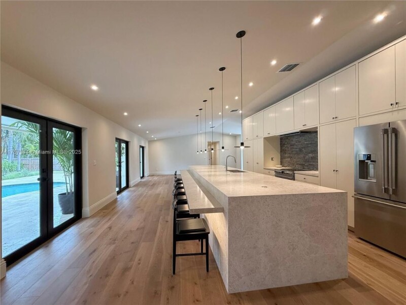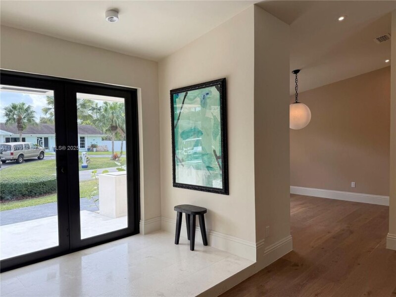 Meticulously renovated split plan Palmetto Bay home by husband and wife architectural design team. Reimagined for modern living with open kitchen featuring marble 16' marble kitchen island that seats up to 7. Home features include impact windows and doors, 3 car garage, engineered oak wood floors, shell stone tile, large open kitchen concept with new SS appliances and volume ceilings, all PVC plumbing, new ACs, and beautiful open redesigned pool area. Dining room could possible be used as an office also. This home is a split plan layout with 3/2 on one side and a 1/1 on the other. New beautiful landscaping in both the front and back yard for your enjoyment under the covered patio. Main space of the home connects with the outdoors through a series of 3 double doors to bring the outside in.