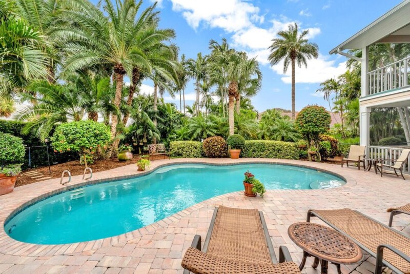 Experience coastal living in this lovely 4 BR, 3.5BA, 2-story residence East of A1A. Perfect for family or seasonal resident! Enjoy ocean breezes from expansive covered first + second floor terraces overlooking tropical pool/landscape with southern exposure. The home features tiled living areas, generous 1st floor primary suite, formal living/dining, island kitchen w/granite counters & dining nook that opens to family room. Upstairs is perfect for guests with loft/sitting area plus 3BD/2BA. New Roof 2024 Desirable gated community w/ low HOA fees, beach access and close to St. Edwards School.