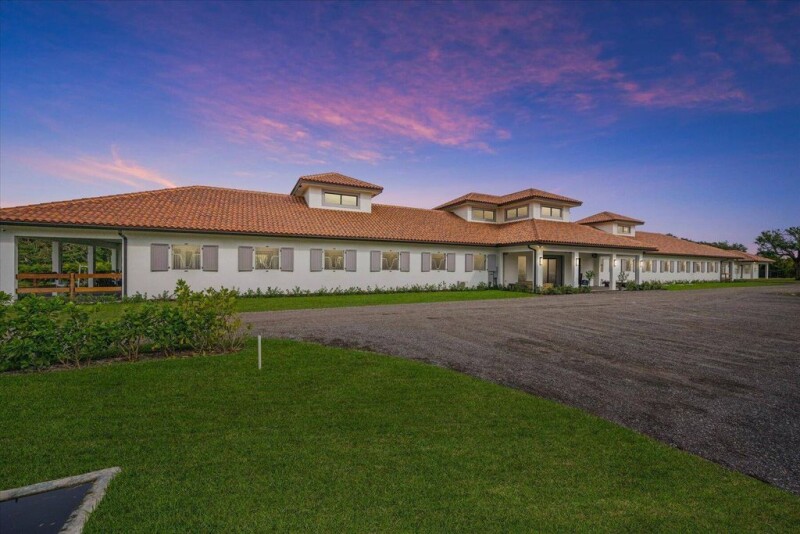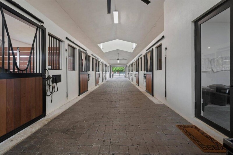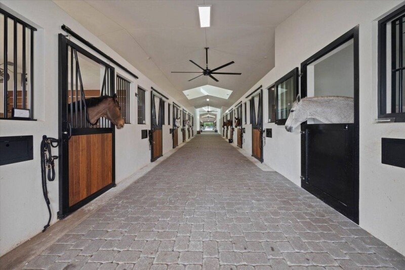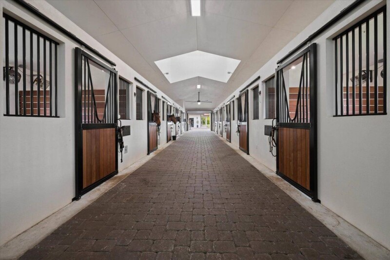 Wellington's newest farm, tailor-made for horse enthusiasts, nestled on nearly 6 acres. This leading edge center aisle barn includes 24 expertly designed stalls, each with padded interiors for utmost comfort. Additional features in the barn include a dedicated vet stall doubling as a quarantine stall, 2 tack rooms, office with full bathroom, laundry facilities, storage, medical room and additional half bath . The covered arena measuring 75x155 houses a round pen and walker, while two additional arenas, both all weather fiber sand rings measure 150x230 and 86x194. Plenty of turn out throughout the property with 11 paddocks.The main residence features.