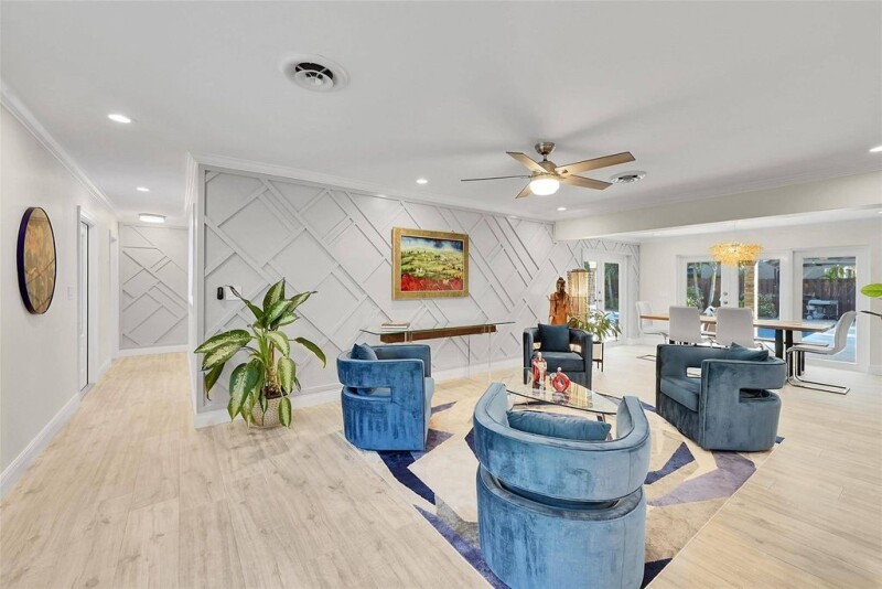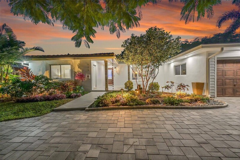 Exquisitely renovated 4-bed, 3 full bath home, perfect for entertaining friends and family. Chef's dream kitchen includes a butler’s kitchen, 2 refrigerators, new appliances, and plenty of storage. This home features unique touches including awesome lighting, textured walls, and porcelain flooring throughout this open-air home. Outdoors features an oversized pool, travertine pool decking, a covered patio, hurricane impact windows/doors, a new circular paver driveway, and a 2-car garage. New tile roof was replaced in 2020. Enjoy lush tropical landscaping, fruit trees, dramatic landscape lighting, a sprinkler system on a well, an outdoor shower, and great natural light. Two entrance plans are ideal for an in-law suite or home office. A stunning opportunity in a prime location!.