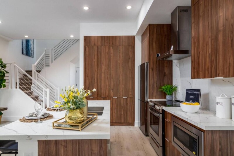 Centered in midtown Phoenix at the Northeast corner of Encanto Village sits these newer ultra-modern townhomes. Minutes to Uptown, Downtown, the 101, 10 and 51. So close to all that central Phoenix has to offer; hiking, sporting venues, music venues, food scene and nightlife. Near many of the major area hospitals such as Phoenix Children's Hospital, Banner University Medical Center and VA Medical Center. Walking distance to the light-rail that runs on Central connecting Uptown to Downtown Phoenix, and extending as far as Mesa. The townhomes boast modern finishes that can also be upgraded prior to moving in, if you choose to make your home a real showpiece. First level offers an open floor plan and kitchen with energy-efficient appliances, quartz countertops, rich wood cabinetry and a large center island. Spacious and light-filled 3 bedrooms on the second level feature 9ft+ ceilings and more than one flex space giving you extra room for family, den or office. You can see Camelback and Piestewa out of the primary bedrooms. Private courtyard in the front for outdoor dining, entertaining and relaxing. This home is an end unit. Modern technology; pre-wired for EV charging, LAN, TV, Ring door bell, garage smartphone enabled door. Also, solar ready; home was pre-wired during construction so no additional electronic work needed when installing panels.