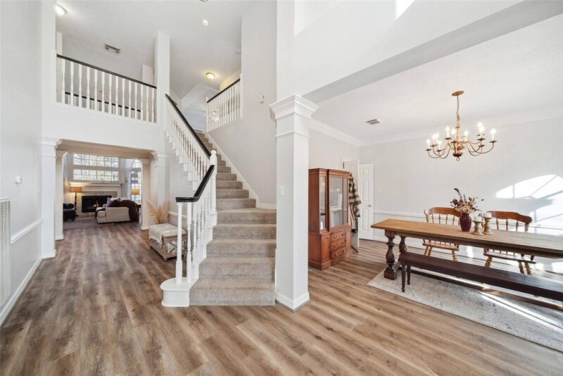 Stunning 5-bedroom home by Village Builders,showcasing meticulous attention to detail from every angle. Situated on a cul-de-sac in Riverchase, a beautifully updated Seville plan w/ open, bright, welcoming atmosphere. The dining room & study flank the entryway. Spacious primary bedroom suite offers privacy & tranquility, with a luxurious primary bath featuring 2 large closets, separate shower & tub. In 2022, the walk-in shower, hardware, & mirror all replaced.Open-living areas ideal for living & entertaining. Kitchen boasts double ovens, microwave, smooth cooktop, island, breakfast bar, pantry & abundant storage.Upstairs floorplan includes a large gameroom, 4 add’l bedrooms, & two full baths.Zoned to Willow Creek Elem., Riverwood Middle, & Kingwood High.Recent updates:fresh interior & exterior paint in 2022, wood-like luxury vinyl plank flooring on 1st floor, & new carpet upstairs. Updates: roof 2016, fence 2018, upstairs AC unit in 2018, downstairs AC unit 2020. Fireplace update 2022.