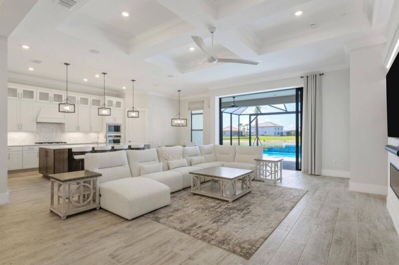 Don't wait to build - Move in now! Exquisite Luxury Living Awaits You In Verdana Village! Step into this stunning, newly bult home featuring over $400K in premium upgrades and unparalleled craftsmanship. With just under 3,000 living sq ft, this spacious 3-bedroom, 3.5-bath home also includes an enclosed flex room--perfect for an office, den, or any space that suits your lifestyle. Every detail, from the level 6 tile flooring to the tray ceilings in the Owner's Suite and Gathering Room, is meticulously crafted for comfort and style. The gourmet kitchen is a chef's dream with 42'' wood cabinets, quartz countertops, and premium gas powered Kitchen-Aid appliances. Enjoy your morning coffee in the light-filled cafe or entertain guests in.