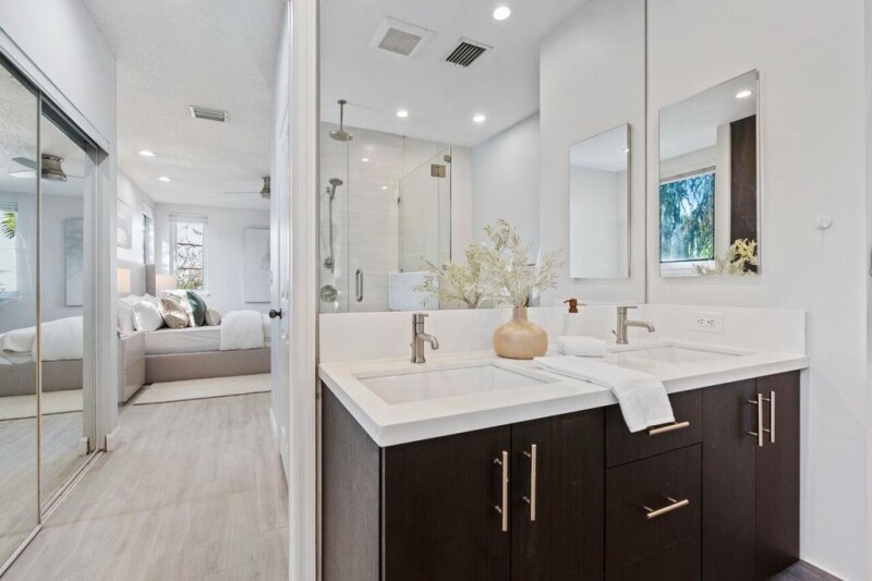 Updated fee simple townhouse in the heart of Historic Colee Hammock just steps from Las Olas shops and restaurants, or take a slightly longer stroll down to the beach. No HOA or rental restrictions and not in a flood zone. Dramatic soaring ceilings, beautiful built-in shelving and fabulous natural light greets you as you enter this open floor plan with a full ensuite bedroom and half bath downstairs and 3 bedrooms and 2 bathrooms upstairs. All new kitchen appliances. Fully fenced private outdoor space fits parking for 2 cars. Full impact windows and doors. Please note garage is for storage only. It cannot fit a car. Owner would consider seller finance.