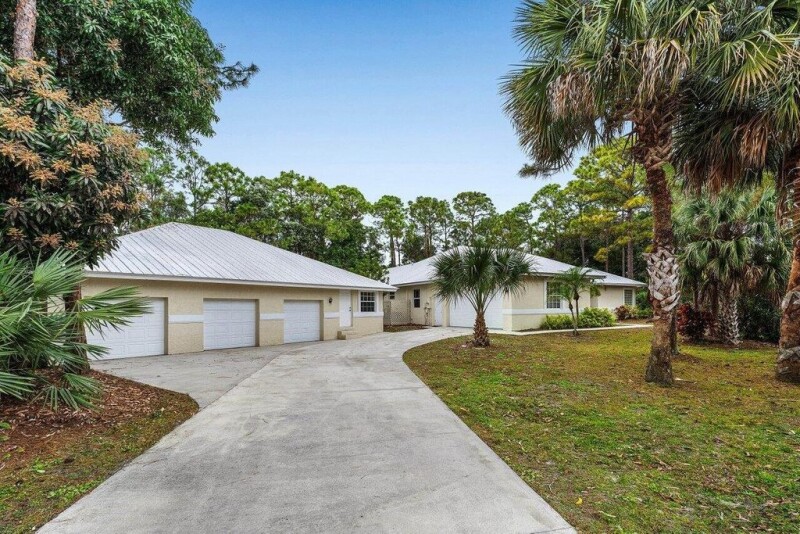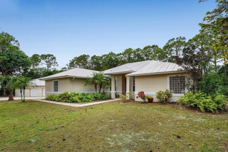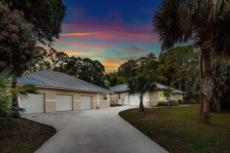 A Jupiter Farms hobbyist's dream! This meticulously maintained CBS residence is situated on a private acre lot, fully fenced with an electric entry gate. The main residence offers 3 spacious bedrooms and split bedroom floor plan, along with 3 full bathrooms and a den. This home is a car enthusiasts dream, with the attached 2 car garage, PLUS detached 3-bay, six car garage and private guest quarters providing 1 bedroom, full bathroom, and kitchen! Enjoy the convenience of location to local amenities within Jupiter Farms, as well as Jupiter's beautiful public beaches, and easy commute to I-95 and the Florida Turnpike.