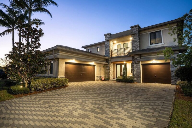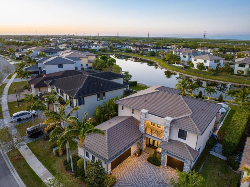 Rarely available Presidential Collection Niagara model in Cascata at MiraLago! This 5-bed, 5.5-bath, 3-car garage home boasts soaring ceilings, a spacious open floor plan, and a breathtaking lakefront backyard retreat. The chef's kitchen features white cabinetry, quartz counters, a gas cooktop, snack-bar seating, and a large pantry. A stunning family room offers a built-in wall unit, surround sound, and electric blinds. Italian 24x48 porcelain tile downstairs, wood-look plank tile upstairs--no carpet! The first floor includes a private guest suite. The luxurious primary suite has a spa-like bath and custom walk-in closet. Outdoor paradise with a summer kitchen, saltwater heated pool, impact windows/doors, and an oversized deep lot on a cul-de-sac. Resort-style amenities & A-rated schools!.