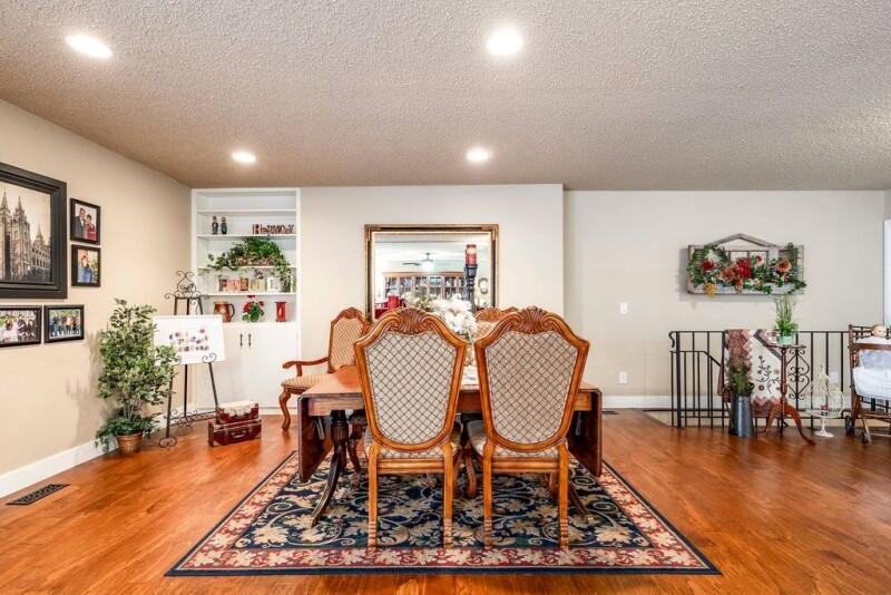 This beautifully remodeled condominium is nestled in the desirable Bountiful Gardens, a 55+ community in Bountiful, Utah. This spacious 4-bedroom, 3-bathroom residence offers approximately 2,632 square feet of comfortable living space. This charming condo allows for single-level living, with a master bedroom, bathroom, an additional bedroom (currently being used as an office), kitchen, formal living room, dining room, and laundry on the main level. This home also features a fully-finished basement, with two more bedrooms, a second laundry room, and a large family room. The interior boasts a formal living room, formal dining room, and two family rooms, ensuring plenty of space for gatherings. The kitchen is equipped with modern appliances, including a double-oven and complemented by tile flooring and drapes that add a touch of elegance. A cozy fireplace enhances the inviting atmosphere of the home. Central air conditioning and forced air heating ensure year-round comfort. Residents will appreciate the South-facing windows that bathe the interior in natural light and the easy access to community amenities such as the pool and clubhouse. The property includes two covered parking spaces and is conveniently located within walking distance to restaurants, banks, and shopping centers. The home also features plenty of storage in the basement storage room and all of the built-ins.