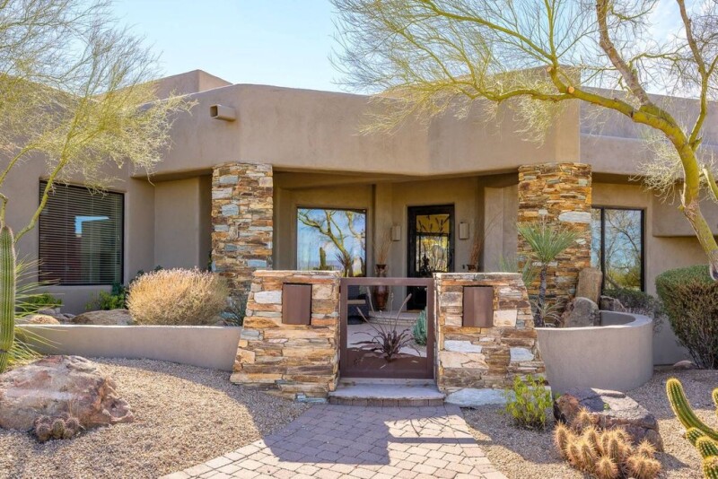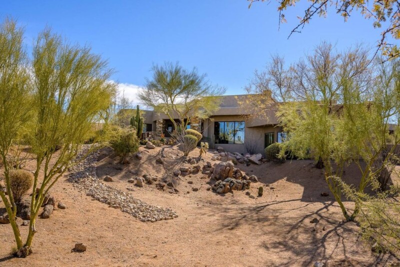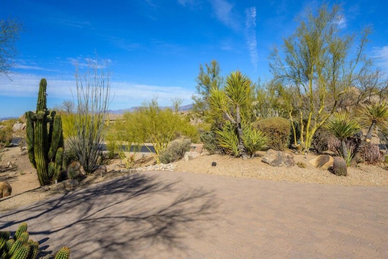 3 bedrooms, 3.5 bathrooms with a office/den or flex room. Gated, golf course community with views of boulders, mountain views and privacy. A comfortable/cozy setting with many custom made features/details throughout the home. Living room sliding doors open wide for backyard entrance/exit. Boulders on the patio with a fire and ice feature. Many skylights throughout the home making it light and bright. The home sits on just under an acre. Lot of built in storage cabinets in the 3 car garage with a work area and extra parking outside of the garages and front door as well. Perfect lock and leave or enjoy year round living at its best.