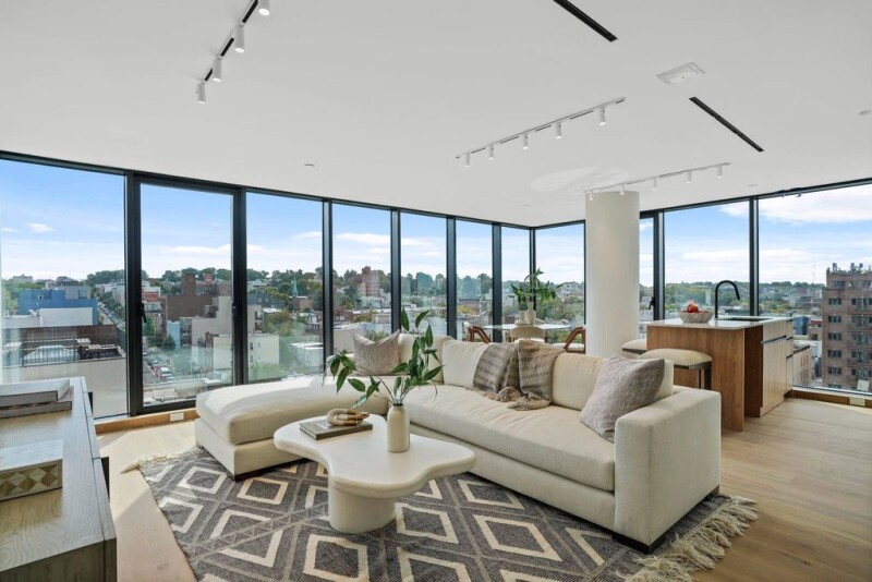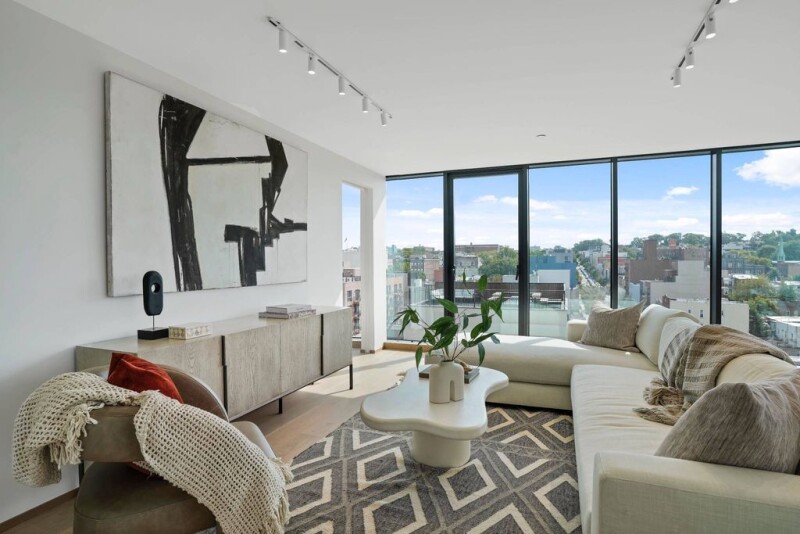 Welcome to Unit 8B, an exceptional two-bedroom, two-bath residence in the heart of Greenwood Heights. Stepping into this thoughtfully designed home you’ll immediately appreciate an open-concept layout that combines the living room, dining area, and kitchen, all framed by south-east facing UV blocking, floor-to-ceiling windows that bathe the space in natural light. The contemporary kitchen is equipped with premium Fisher & Paykel appliances, custom cabinetry, and a spacious island with marble countertop, making it ideal for cooking and entertaining. The primary bedroom serves as a private sanctuary, complete with an en-suite bathroom featuring illuminated luxurious finishes, floating toilet and a spacious walk-in closet with sliding pocket doors.The second bedroom is also generously sized. Both bedrooms showcase dramatic windows with expansive views, filling the rooms with natural light and offering an inviting and airy atmosphere. Adding to the unit’s convenience, you’ll find an in-unit washer and dryer, ensuring everyday chores are effortless and efficient. The second full bathroom, located adjacent to the living area, features modern fixtures and ample space, perfectly positioned for guests or shared use by the second bedroom. Lumina is an 11-story architectural marvel, designed by renowned architect Murat Mutlu of INOA architects. This impressive new development offers an elevated living experience, starting with its dramatic lobby, where elegant design meets functionality. Two elevators ensure seamless access to all residences. Residents will enjoy a fully equipped fitness center, greenscaped roof terrace ideal for relaxation and social gatherings, and bike storage. Located in the heart of Greenwood Heights, Brooklyn. This stunning new development is a modern addition to the neighborhood’s skyline, characterized by its bold glass facade and contemporary aesthetic. Perfectly positioned between the sought-after neighborhood of Park Slope and the lively hub of Industry City, it will have access to some of Brooklyn’s best dining, shopping, transportation and entertainment options. With access to 3 subway lines, Lumina will offer a seamless commute into Manhattan and other parts of Brooklyn. Whether you’re in the mood for Park Slope’s quaint cafes or Industry City’s dynamic mix of 40 restaurants from around the world, and its numerous cultural attractions and shopping destinations. Sold by Prospectus Only. CD# 24-0042.