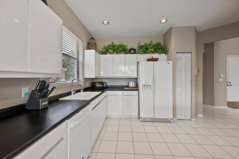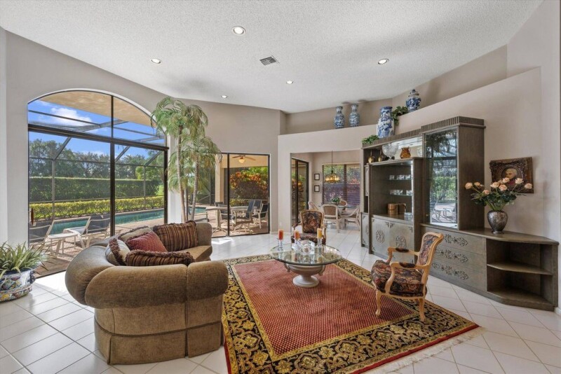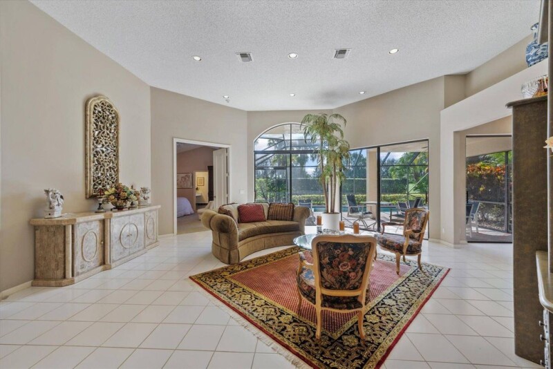 Welcome to this lovely and unique 3-bedroom, 3-bathroom home located in the Dover neighborhood of Wycliffe Golf & Country Club. This beautifully maintained residence offers a fantastic floor plan designed to accommodate both relaxation and entertainment.Step inside and be greeted by spacious living areas filled with natural light. The kitchen is perfectly situated, offering plenty of room for meal preparation and casual dining, ideal for both family meals and entertaining guests. The large primary suite features an oversized walk-in closet. The guest room has its own ensuite full bathroom.The private outdoor oasis includes a sparkling pool, perfect for taking a dip or lounging by the water on warm Florida days. The 2017 AC units ensure your comfort year-round.