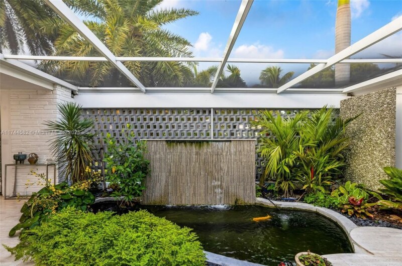 Discover 110 feet of prime waterfront just two houses from the open bay along this exquisite mid-century modern masterpiece. This completely remodeled 5-bedroom, 4.5-bath haven boasts roughly 4000 square feet (bigger than tax roll) of refined elegance. The Amish handmade kitchen, adorned with Italian travertine, is an architectural delight. The home offers a unique Dirty French-inspired movie room, perfect for entertainment. Revel in the lushly landscaped front yard featuring a serene koi pond, while the expansive backyard. Enjoy the luxury boating access from this oversized 11,258-square-foot lot. Dive into the below-ground pool, or barbecue with friends in your custom barbecue area.This Bayfront treasure is truly unparalleled.