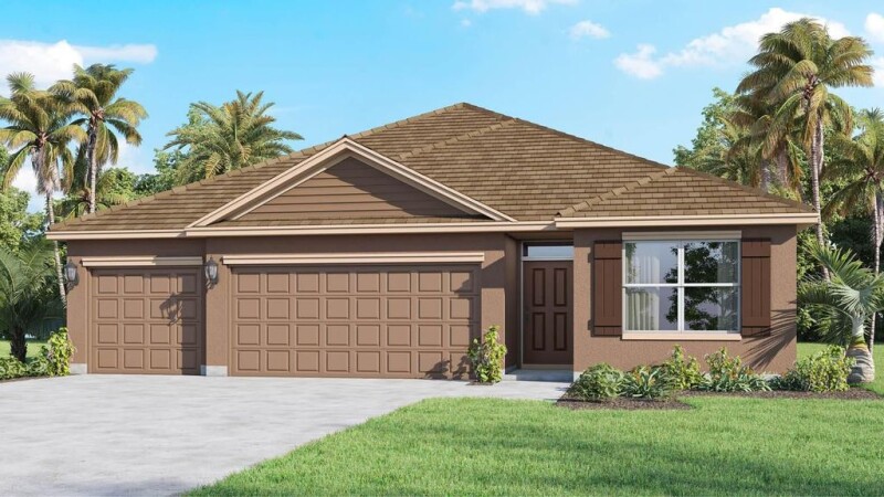 This beautifully designed, all-concrete block, one-story home features an efficient floor plan. The foyer leads to two guest bedrooms sharing a full bath and a third with an ensuite. A laundry room and linen closet are across the hall. The three-car garage includes openers, with ample parking on the wide driveway. Located in a boat and RV-friendly area with no HOA restrictions. The kitchen boasts an expansive island, quartz countertops, oversized undermount sink, and a large pantry. The primary suite offers a luxurious bath, double vanity, walk-in closet, and shower/tub combo. Smart home technology included.