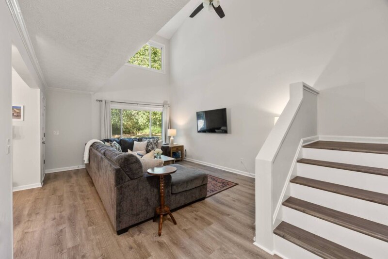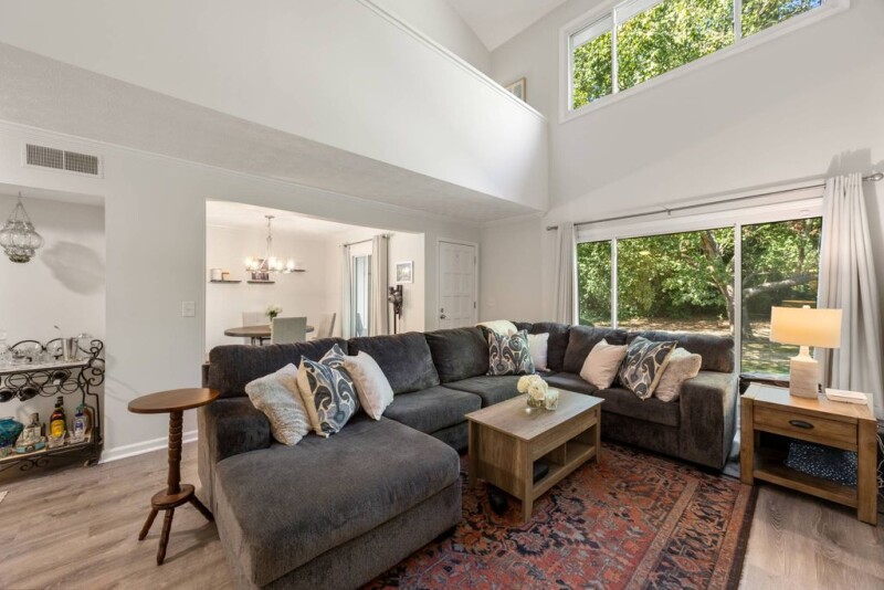 Welcome home to Cedar Canyon- a beautiful swim and tennis community surrounded by lush landscape, ideally situated within minutes of The Battery and I-75. This recently renovated unit includes two levels of light-filled space overlooking an expansive private greenspace. On the main floor, a spacious, updated kitchen is flanked by a private home office and a separate dining room which opens into the airy, two-story great room. An architectural niche allows for the perfect dropzone and even a bar and a separate powder room is perfect for guests. Upstairs, the open loft accommodates a convenient laundry room and a second work from home space (or the perfect place for a Peloton). The primary suite features vaulted ceilings, a walk-in shower and a new vanity. The two ample secondary bedrooms each with private closet share a large hall bathroom.
