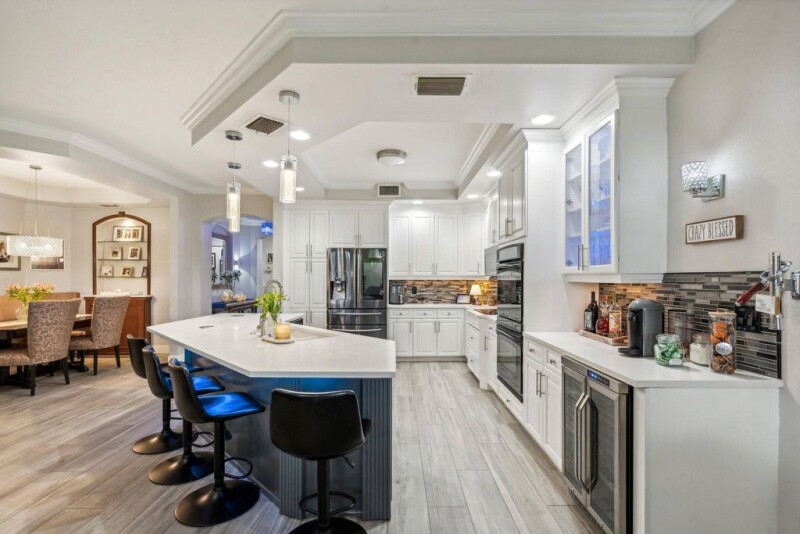 Welcome to your remodeled one level townhome! This turnkey corner unit offers the perfect blend of luxury and comfort. New 2025 Roof, Impact windows, open & spacious floor plan, the modern kitchen is a chef's delight, featuring top-of-the-line appliances, quartz countertops, and ample cabinet space. The master suite is a true sanctuary, boasting a generous walk-in closet and a luxurious en-suite bathroom. Enjoy your mornings on the private lanai, sipping coffee and soaking in the tranquil surroundings. The additional bedrooms are perfect for family, guests, or a home office. The community offers a wealth of amenities, golf, fitness center, pool, tennis, pickle ball, bar & restaurant. Quarterly HOA Covers, Insurance, Roof, Lawn Care, Pool, & Maintenance. Home is Gated with 24 hour Security.