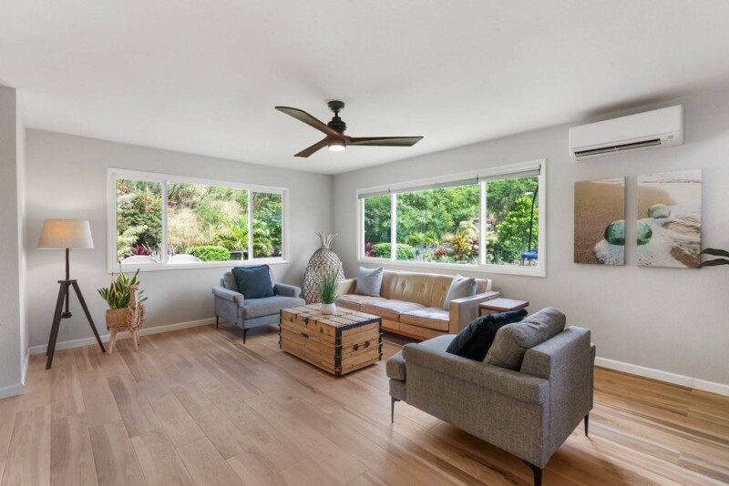 Welcome to your new island retreat at 1369 Kuuna Place in Kailua. Nestled at the end of a tranquil cul-de-sac, this exquisite 4-bedroom, 2-1/2 bath home promises privacy, luxury, and picturesque surroundings. With no rear neighbors, the property enjoys an uninterrupted backdrop of lush green hills, enhancing its peaceful and secluded ambiance. The house features a spacious living area that seamlessly transitions into the dining space, making it perfect for both family life and entertaining guests. The bedrooms are thoughtfully designed, spacious and comfortable with beautiful views. The property boasts a beautifully maintained yard with vibrant tropical foliage and newly installed Trex decking, ideal for outdoor dining and leisure. Located in a highly sought-after neighborhood of Kailua, this home is just a few minutes away from world-class beaches, exquisite shopping, and fine dining experiences, combining the serenity of island life with the convenience of modern living. Discover your perfect home at 1369 Kuuna Place, where beauty and tranquility meet.