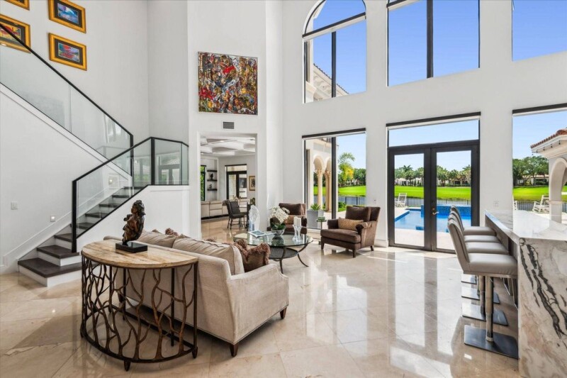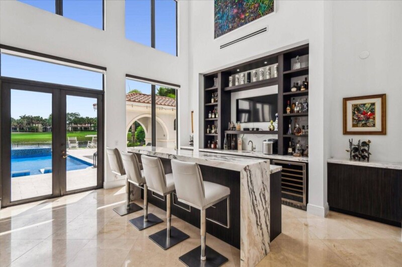 Discover a rare opportunity in the exclusive community of Parkland Golf & Country Club. This exquisite luxurious estate hosts 6 bedrooms, 5/2 baths & office, overlooks the rolling 4th fairway & tranquil waters. From the moment you enter this contemporary mini mansion you will be captivated by the flawless design & attention to detail throughout. An expansive living room, custom bar & formal dining room w soaring ceilings, create an elegant yet inviting ambiance. Ceiling to floor glass overlooking the newer saltwater heated pool, spa & patio w private cabana bath, perfect for entertaining. Custom designed kitchen flows seamlessly into the family room and breakfast area, beautiful and functional.A true centerpiece, over $700,000 in magnificent upgrades impact windows & doors.