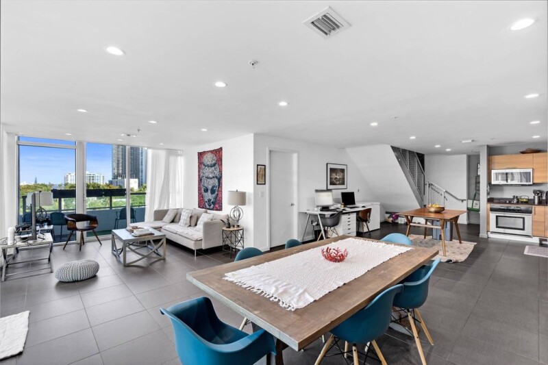 Exceptional corner unit, distinguished by its lofty ceilings and full-height windows, creates a luminous and spacious living area. This property showcases elite finishes, hardwood flooring on the upper level, bespoke furniture, and designer lighting. The allocated parking pace is conveniently located just a short distance from your door, simplifying entry and exits. The residence is part of Four Midtown, offering premium amenities like a swimming pool with Jacuzzi, state-of-the-art gym, yoga studio, sauna, steam room, barbecue area, and a fully equipped business center. Embrace the dynamic Midtown lifestyle, with convenient access to an array of shopping, dining, and beauty services right outside your door.