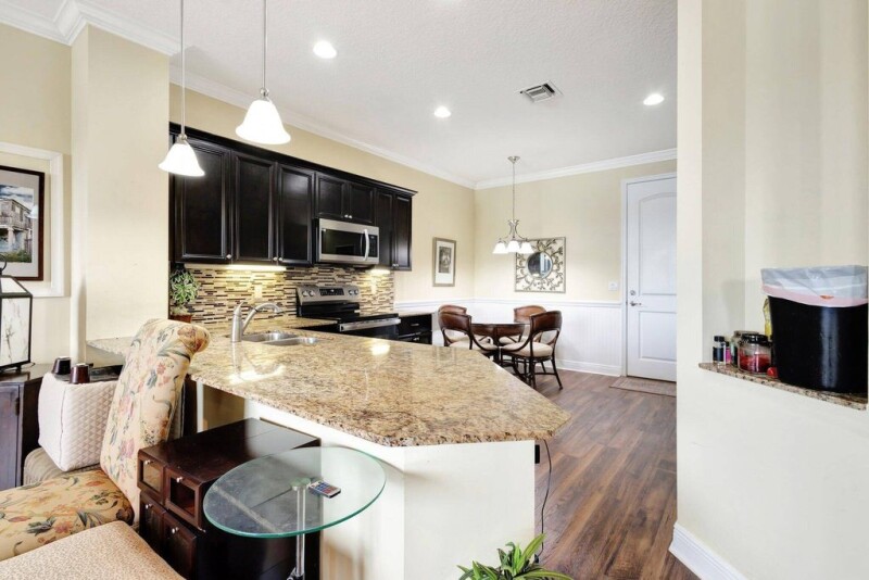 Surprisingly spacious townhouse located in beautiful gated community close to all necessities! This well constructed and 3BR / 2.5BA / 2c garage home boasts of oversized rooms & closets, open floor plan with volume ceilings. eat-in-kitchen with open breakfast bar, stainless steel appliances, granite countertops & plenty of cabinets! Upstairs enjoy a bonus loft area, enormous master suite w/ two huge walk-in closets, dual sinks, Roman tub & oversized separate shower, beautiful wood floors throughout the hall and master, great laundry room with an abundance of cabinets, and two sunny guest BRs w/ large closets. Also featuring hurricane impact windows and paver patio overlooking the lake! HOA fees cover clubhouse w/gym & pool, roof & lawn maintenance, exterior insurance & WATER.