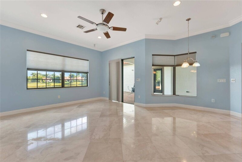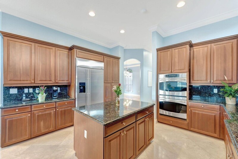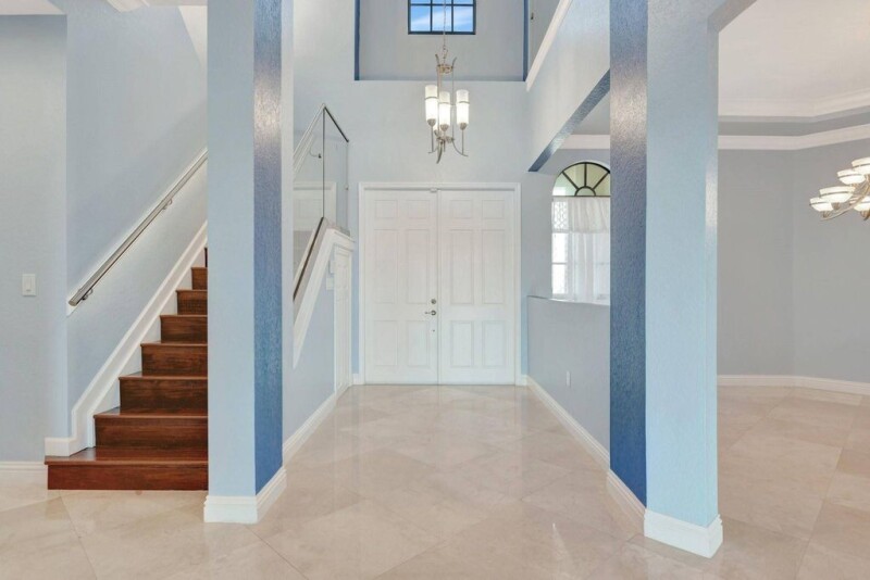 Spectacular, Le Verona Model home with recently renovated salt-water pool & spa, is nestled in the coveted & gated community of Estada. From the welcoming courtyard entrance to the tranquil water's edge, this lovely home features 3 master suites! Flooded with natural light, this spacious home presents soaring ceilings & diagonal marble and hand scraped wood floors. Other features include a huge primary suite with walk-in closets & a large bath w/vanity & jacuzzi, impact glass, and a state-of-the-art open kitchen w/ double wall ovens. 3 A/C units w/ UV light cleaners provide optimal climate control. A+ schools! Located in a quiet community and situated across from a newly updated private play park, this unique home offers an exquisite living experience, and the very best of South Florida!.