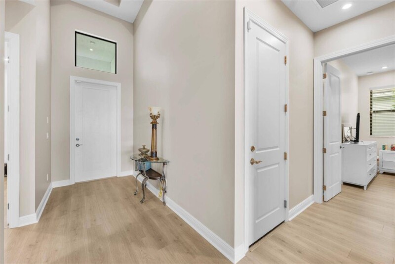 Perfect *Turn Key Home* offering lush tropical landscaping & plenty of privacy overlooking a private canal. *NO NEED TO BUILD* This 3BD/3BA, w/Flex room (office/gym) home boasts gorgeous upgraded features: Complete Hurricane Impact Windows & Doors, Laminate Wood Floors thru-out, Gourmet Kitchen with 42” White Cabinets w/Crown Molding & under Cabinet Lighting, a Quartz Island & Countertops w/plenty of space for Entertaining & Motorized Solar Blinds in great room. The Owner’s suite features a tray ceiling, Custom Motorized Cellular Blinds, Frameless Shower, a huge Walk-in closet that connects to the laundry room. This home located across from the clubhouse & fitness center offering 27-Court Pickleball, Tennis Courts, SmartFIT Training Center, Resort-Style Pools in PGA Verano Golf Community.