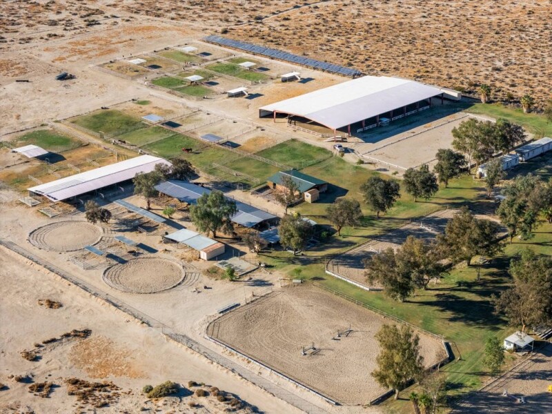 The Willowbrook Riding Club, a premier equestrian facility operating for over 20 years, is a rare offering for those interested in the equestrian lifestyle and industry. With a conditional use permit (CUP) for an Equestrian Center and Tack Shop that has approximately 40 years remaining, this unique property provides the ideal environment for boarding, training, lessons, horse shows, and more. Set on a zoned W2 property with controlled development, the Willowbrook Riding Club is permitted to host up to 200 horses and offers a wealth of amenities. The facility includes five arenas, with the large, covered arena providing year-round schooling, lessons, and event opportunities. Multiple barns, ranging from box stalls to half-covered in-and-outs, as well as tack rooms, wash racks, turnout paddocks, and round pens, accommodate a variety of equestrian needs. Recent upgrades include a Mare Motel with 10 stalls, fans and clippers for grooming, 12 lockers, and visual/audio monitoring for horses. New turnout paddocks—grassy and of different sizes—further enhance the facility. The property also features a hot walker and direct access to open desert trails, providing endless opportunities for exercise and exploration. Additionally, the facility benefits from a leased solar system that keeps power costs low (approximately $390 per month) and a deep, private well for a steady and plentiful water supply. The permitted home on the property offers 3 bedrooms, 2 bathrooms, a fireplace, and approximately 1,556 square feet of living space, with a permitted addition completed in 2002. With breathtaking views, privacy, and direct access to Bureau of Land Management (BLM) land on two sides, the Willowbrook Riding Club offers a serene and expansive environment. The property is conveniently located just 5 minutes from Desert Hot Springs, 20 minutes from Palm Springs, and 35 minutes from the HITS show grounds. An adjacent 19+ acre parcel, featuring a newly drilled 400-foot deep well, is also available for separate purchase—perfect for future development opportunities. This exceptional equestrian facility is by appointment only, with a full-time resident on-site.