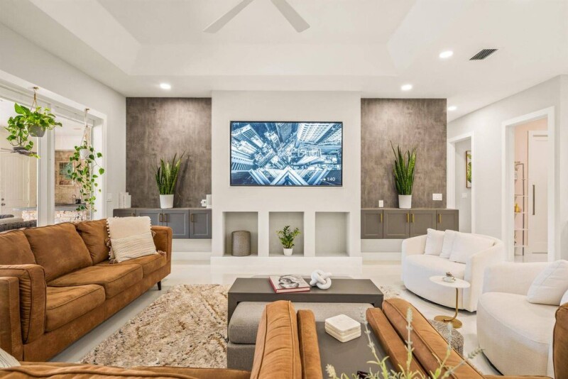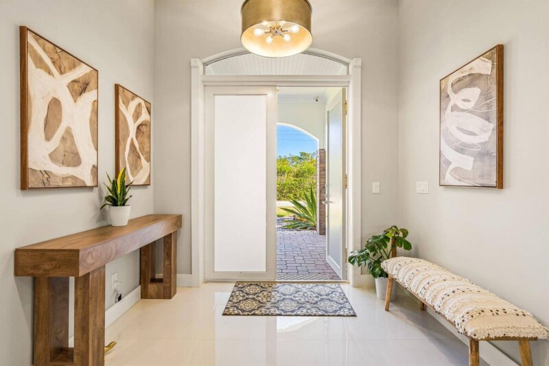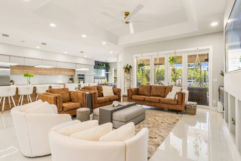 ADDITIONAL ACREAGE NOW OFFERED SEPARATELY! Stunning renovations completed in '24 will amaze in this luxurious 4 Bed/3.5 Bath custom waterfront smarthome w 2.5 car garage, screened pool & angled dock w two boat lifts, addt'l floating dock & 50A shore power! Countless features will impress incl the gorgeous kitchen w double island, wet bar, den & separate 'zen' room, impact windows & doors, custom accents & built ins, this home is truly a MUST SEE!! Just 1/4 mile walk to private beach access! 1.96 acre surrounding waterfront property w addt'l homesite & mangrove nature trail also available!.